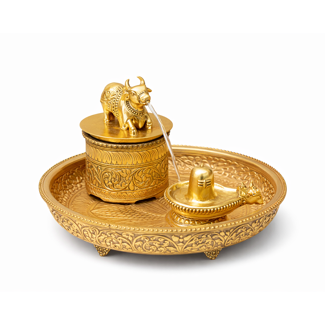 In Shaiva worship, uninterrupted water flow over the Shivling symbolizes purity, surrender, and constant remembrance of Lord Shiva. This plug-and-flow system allows water to circulate smoothly over the Lingam, recreating temple-style abhishekam at home.