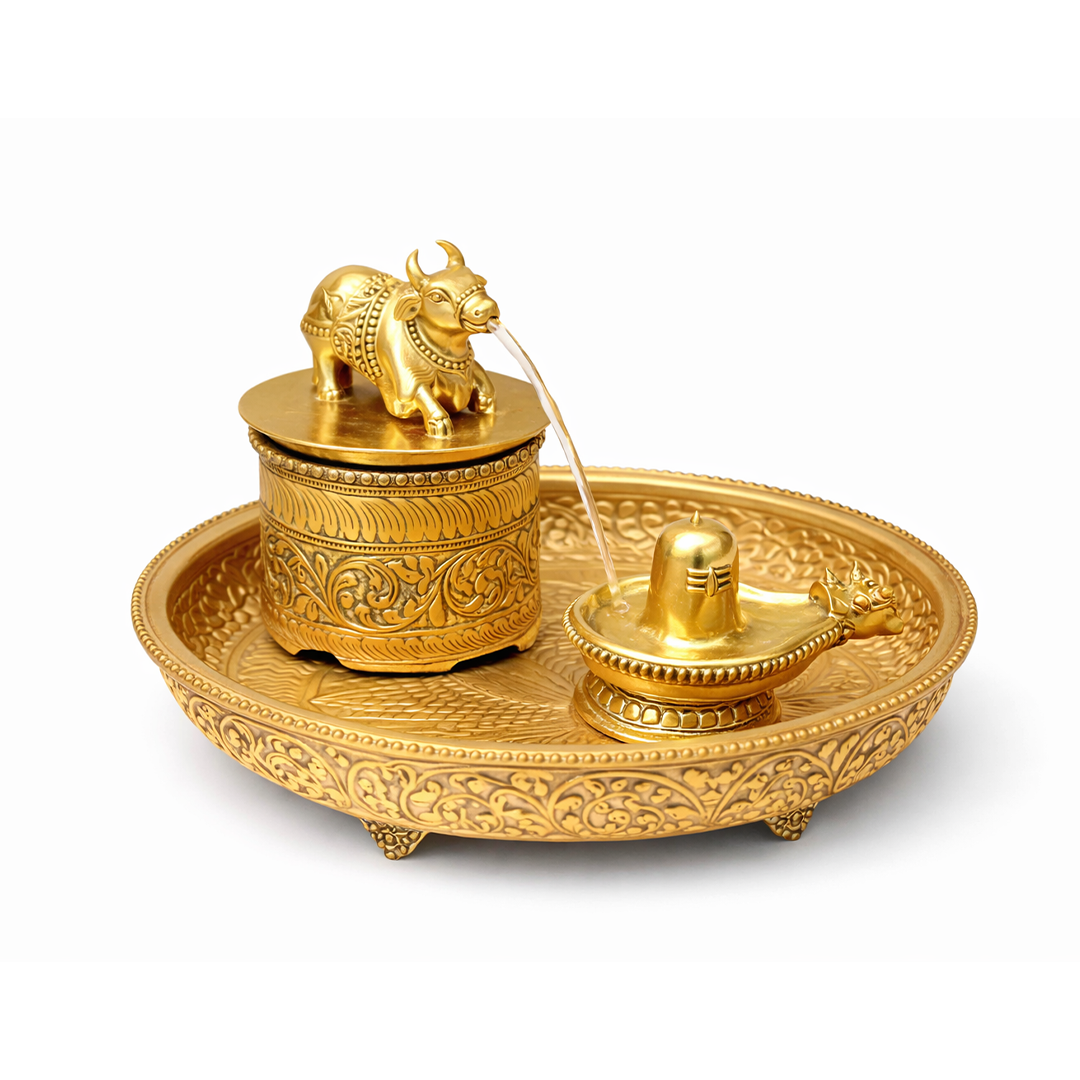 The Automatic Jal Dhara Shivling Fountain – German Silver with Gold Plated Finish is a premium devotional set designed for devotees who wish to perform continuous Shiva abhishekam in a traditional yet convenient manner.